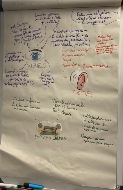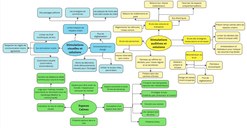 A l’issu de l’atelier, la carte mentale sera mise en forme et accompagnée d’un document de synthèse détaillé, reprenant le contexte scientifique, les résultats d’AutiSenCité, et les apports des participant·e·s.