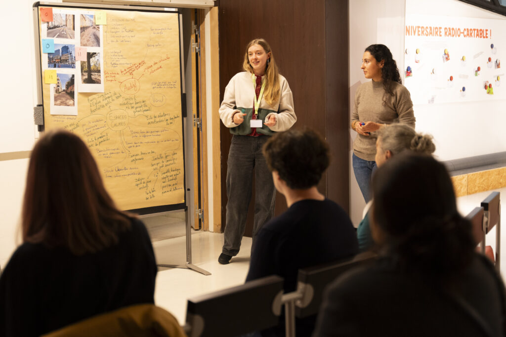Les idées et remarques formulées par les participant·e·s sont prises en notes sous-forme de cartes mentales par les animatrices.